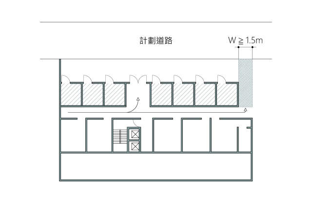 進口應設地面臨道路或寬度在四公尺以上通路之各層外牆面。 |
