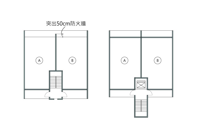 與屋頂避難平臺連接之外牆應具有一小時以上防火時效,開設之門窗應具有半小時以上防火時效。 |